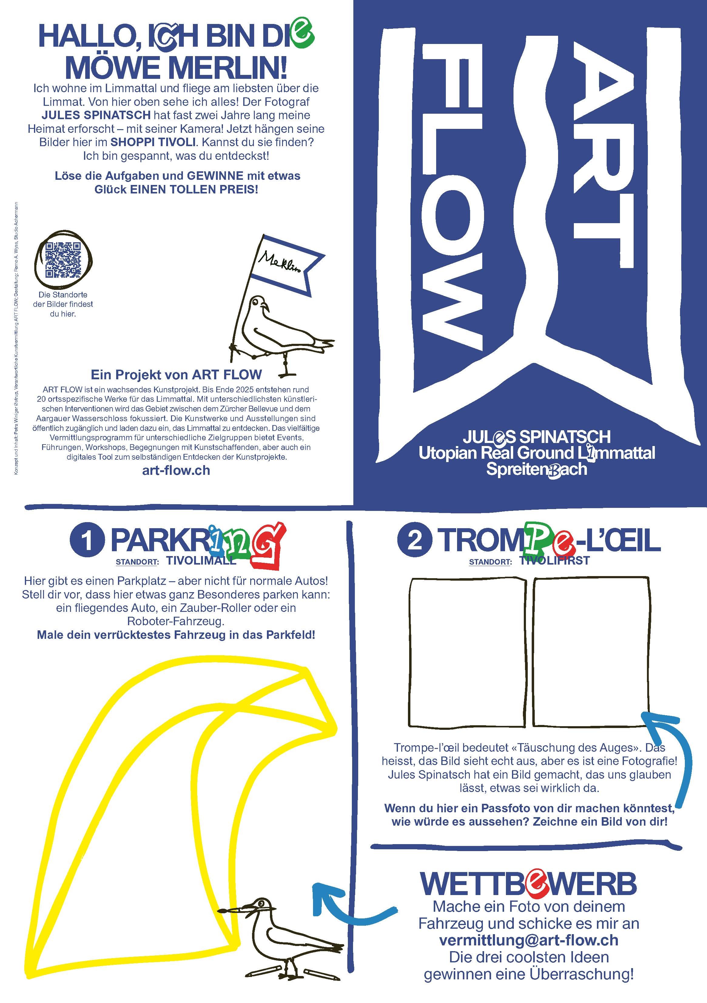 Entdecke mit der Möwe Merlin die Fotografien von Jules Spinatsch im Shoppi Tivoli.
