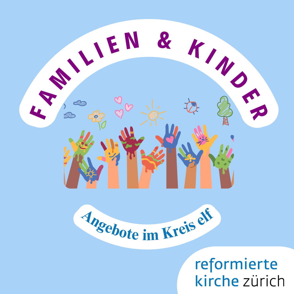 Im Kirchenkreis elf erleben Familien und Kinder Gemeinschaft durch vielfältige Anlässe. In Lager während den Schulferien toben sich die grösseren Kinder aus. Die Kleineren singen gemeinsam mit Eltern oder Grosseltern im Zwärgli-singen und in der Spielgruppe Luftibus werden erste Spielkameraden gefunden. In der Familie Uszit dürfen Familien einen Moment durchatmen, ein Frühstück geniessen, andere Eltern kennenlernen sowie Impulse für Ihren Alltag erhalten. Auch bei den weiteren Angeboten wie Fiire mit de Chliine oder zum Spielen im offenen Spielraum sind ALLE herzlich willkommen! Wir freuen uns auf euch!